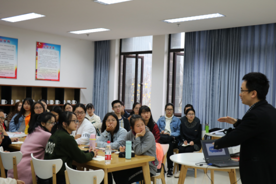 围绕“大学生活应该怎么过”这一主题,江老师以幽默的语言和生动的实例为大家带来了精彩的一课。首先,江老师向大家分享了他大学时期努力学习普通话的故事,并借此告诉大家:开启人生的新篇章并不难,态度和行动力十分重要。随后,他结合具体的案例对花心思与花时间这两个概念进行了区分,同时他还指出,“大学是改变命运的重要时间,我们在这段时间的行为会反映到我们将来的生活中去,因此,现阶段我们应该对自己的生活进行合理规划,有目标,有野心,有真正想要去把它变为现实的欲望!”紧接着,江老师向我们分析了考研和入党的积极意义,他认为考研与入党能让我们成为更优秀的人。最后,江老师给大家提了三个总领性的建议,即“积极主动地求学,培养良好的交流沟通能力和组织协调能力,力所能及地帮助他人”。最后,团委老师陈晓玲对此次培训会进行了简要的总结,并再次表达了对江院友的感谢。