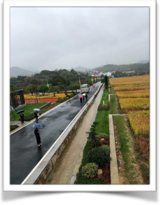 跟随讲解员的脚步,大家来到了“在希望的田野上”的大型展牌前。放眼望去,一个如诗如画的棠棣呈现在面前,在蒙蒙细雨下显得如梦如幻。彩色水稻、千亩花田、兰花温室、整洁宽畅的民居、随处可见的“乡村振兴、诗画田园”的宣传牌,无一不在诉说着“人勤春早”的棠棣精神。