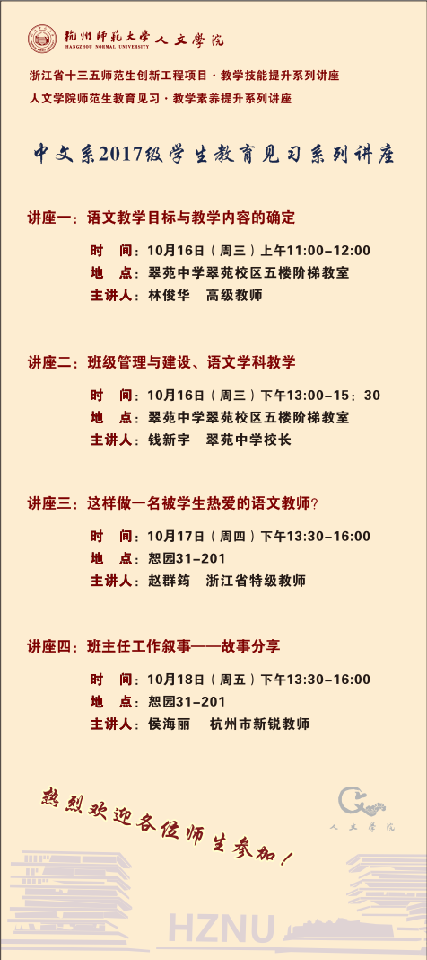 中文系2017级教育见习系列讲座历史系2017级教育见习系列讲座