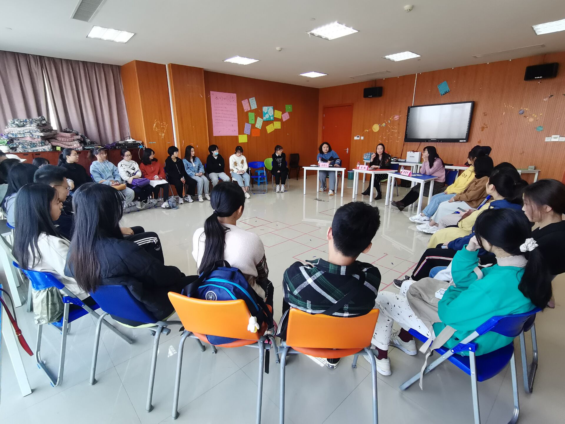 11月11日下午,女同av 在我校师生活动中心316室举行心理沙龙讲座。讲座以“走出抑郁,拥抱治愈”为主题。全国心理健康教育优秀工作者、校心理咨询中心专职心理咨师李梅担任主讲人担任本次讲座主讲人,女同av 18级辅导员陈晓玲老师作为特邀嘉宾参与了本次活动。20余名学子女同av 参与讲座。
