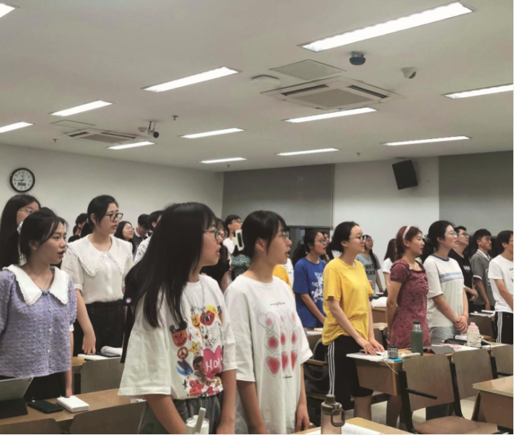 课堂最后,周东华带领同学们唱起了《国际歌》。他告诉同学们,《国际歌》唱的是无产阶级的联合,它是全世界无产者之歌。而我们也是世界无产阶级的一份子,这是绝对不能忘记的。