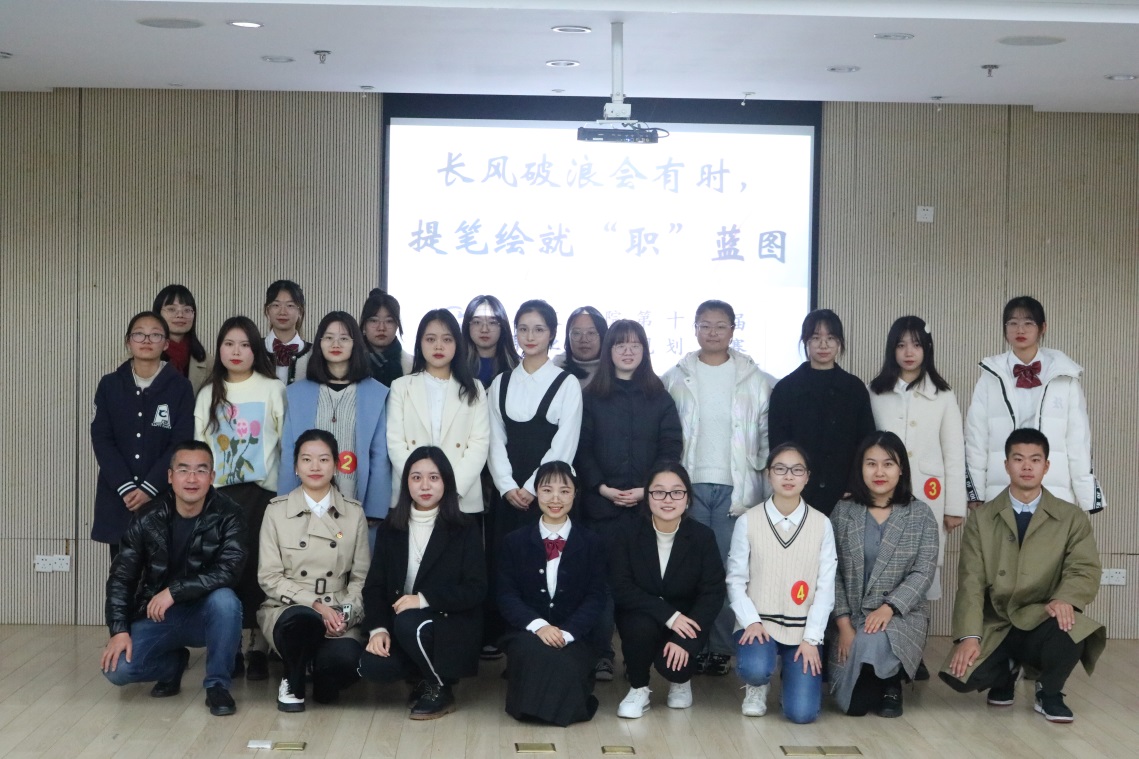11月24日下午一时三十分,女同av 第十二届职业生涯规划大赛决赛在恕园2号楼113教室举行。浙江外国语学院招生就业主管余辉老师,女同av 辅导员李悦老师,“中行杯”第十三届浙江省大学生职业生涯规划大赛二等奖获奖者徐航标受邀担任本次比赛的评委。
