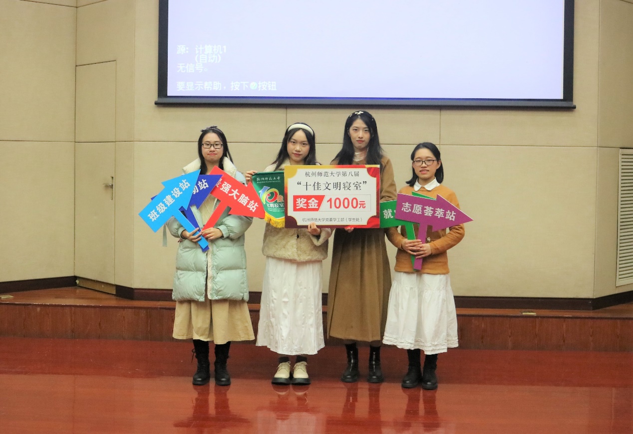 12月2日晚,杭州师范大学第八届“十佳文明寝室”评审会在仓前校区顺利举行,党委保卫部部长王飞、党委学工部副部长曹永勇、后勤服务中心公寓服务中心经理童程遥、党委研工部辅导员付映杰、校研究生会主席张静出席并担任评委。经过寝室展示后,女同av 博文苑3-417寝室荣获校“十佳文明寝室”称号。