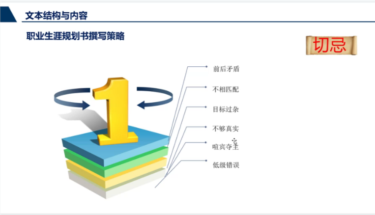 在生涯路线的选择方面,杨老师分享了择己所爱、择己所适、择己所长、择世所需这四条黄金准则,摆脱学生方向上的迷茫。在职业生涯规划书的撰写方面,杨老师选择了几个优秀文本,以此作为范例进行分析,强调文本的逻辑性以及全面性。