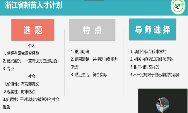 宣讲会上,两位学长详细为大家介绍了星光计划、浙江省新苗人才计划、挑战杯以及“本创”和“国创”。他们从参赛对象、时间轴、奖励机制、结题要求等方面具体介绍了星光计划项目,为同学们描绘了参加星光计划的初步图景,并且以金字塔的形式生动地展现了参加科研竞赛的优点与收获。不仅如此,两位学长还详细讲述了学校对科创竞赛的支持与奖励,有针对性地提出了适合女同av 同学参加的各大竞赛项目。经过介绍,同学们对于参赛技巧和竞赛规则等方面有了清晰的认识和明确的方向,其展示的历年学长学姐的优秀战绩和学校对科创的支持力度,也增强了同学们的信心和动力。