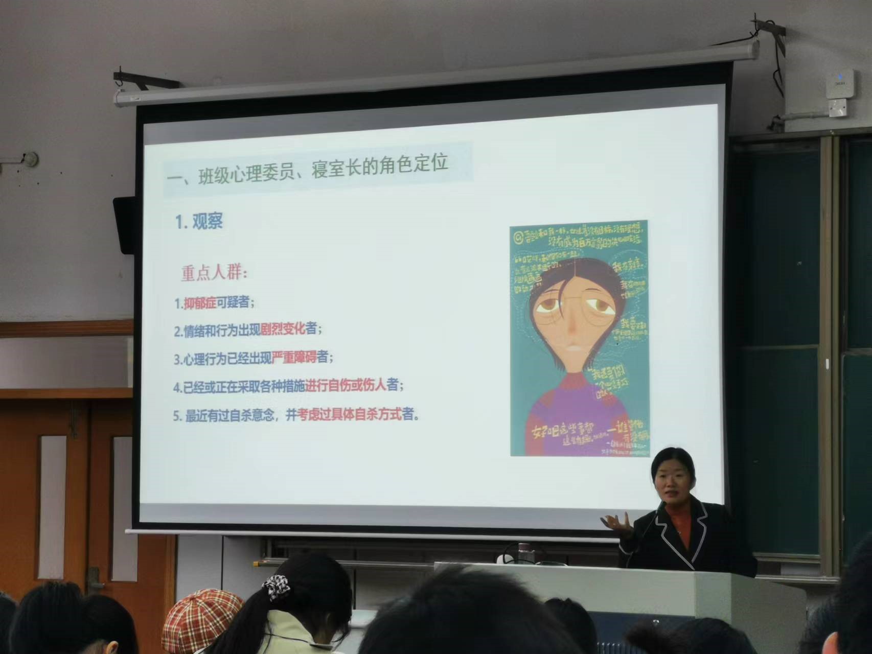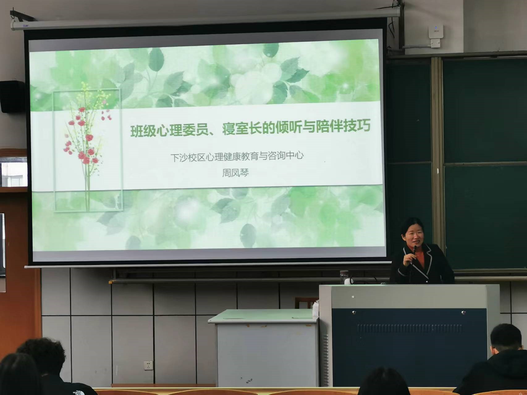 11月16日中午,女同av 新生心理委员和寝室长培训大会在我校下沙校区A楼218教室举行。培训请到了我校心理健康中心周凤琴老师主讲,女同av 新生各班心理委员及寝室长参加此次会议。