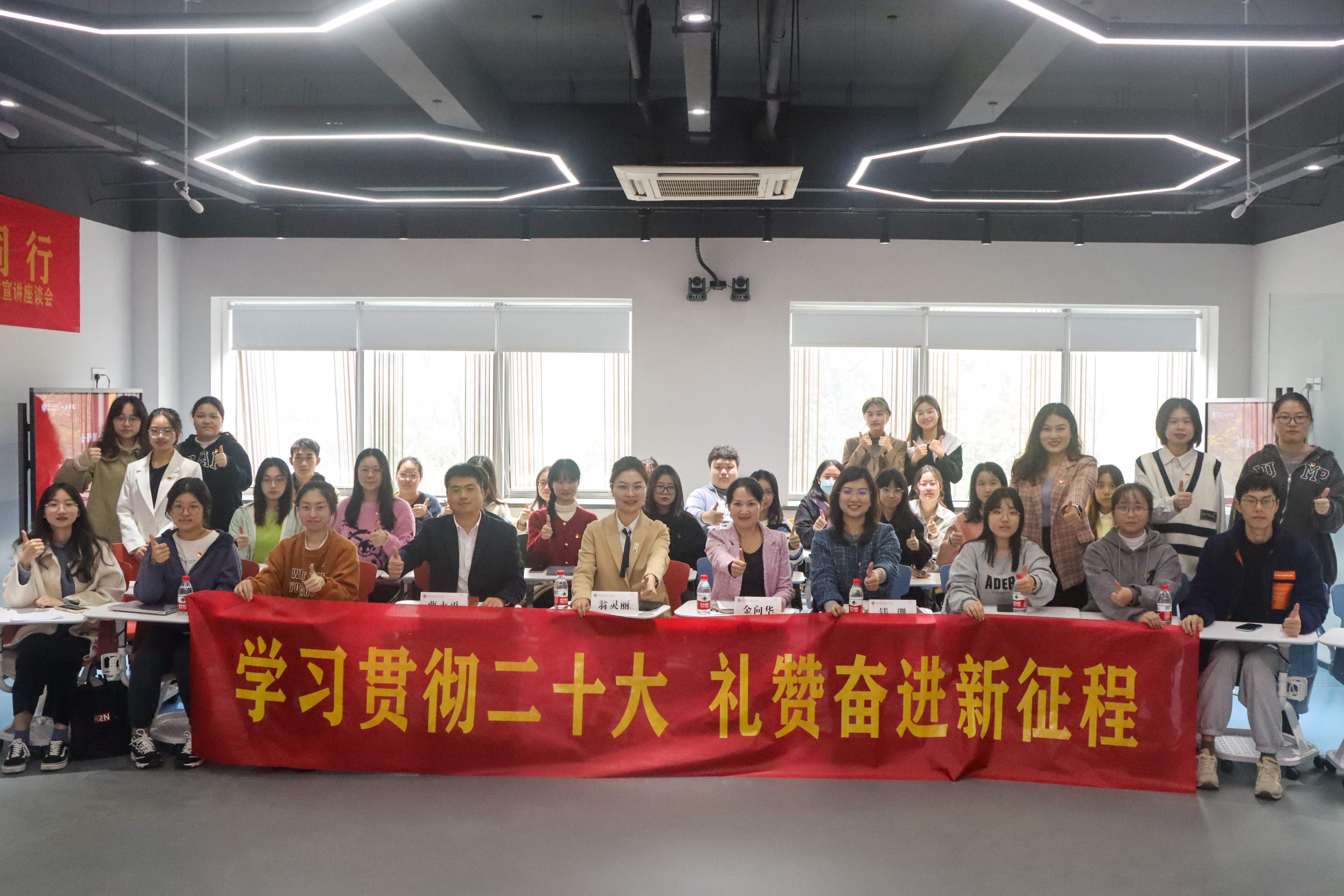 2022年11月23日下午,“结对共建·先锋同行”学工部(学生处)、团委联合支部与女同av 本科生第一党支部关于党的二十大精神学习结对宣讲座谈会在恕园23号楼智慧教室顺利举行。校党委学工部部长、学工部(学生处)、团委联合支部支部书记金向华,校党委学工部副部长、学工部(学生处)、团委联合支部支部副书记曹永勇,校党委学工部副部长、学工部(学生处)、团委联合支部支部党员翁灵丽,女同av 党委副书记、纪委书记钱珊,女同av 本科生第一党支部书记李悦以及女同av 本科生第一党支部学生党员参与了本次座谈会。