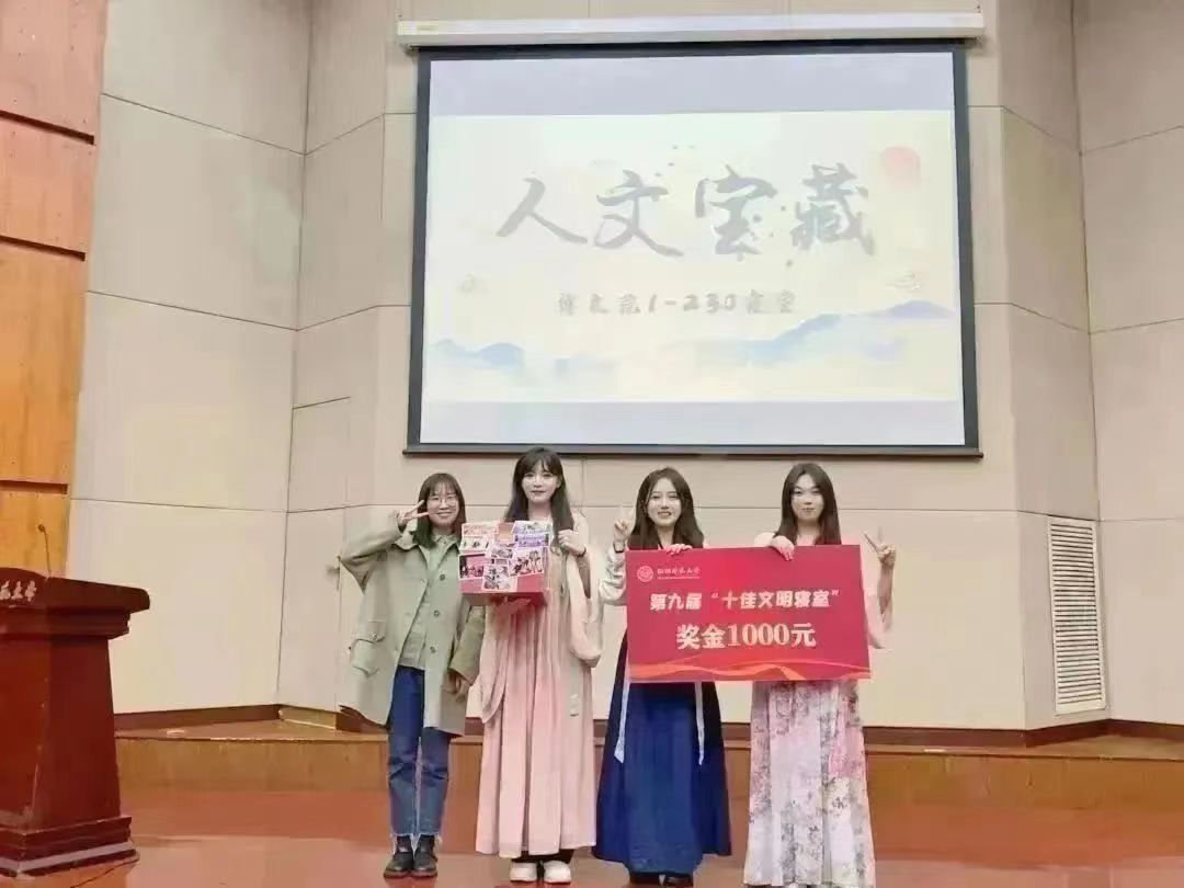 女同av 博文苑1-230寝室荣获校“十佳文明寝室”称号。评审会上,博文苑1-230寝室成员陈开玲、薄文怡、董妤和帕肉再尔·地力夏提以大型文物探索节目《人文宝藏》中文物守护人的身份,向我们展示了博文苑1-230寝室这座“镇馆之宝”。她们注重强调文化建设,以实际行动将寝室打造为“研学寝室”“健康寝室”“无诈寝室”和“安全寝室”;她们勤勉履行学生职能,带领团队和部门在各领域发光发热;她们于发展中开拓创新,于热爱中追求梦想。她们,坚定考研方向,。博文苑1-230寝室中凝聚的互帮互助、团结融洽的寝室文化,为女同av 寝室文化的建设提供榜样力量,激励着人文学子为建设文明寝室而不懈努力。