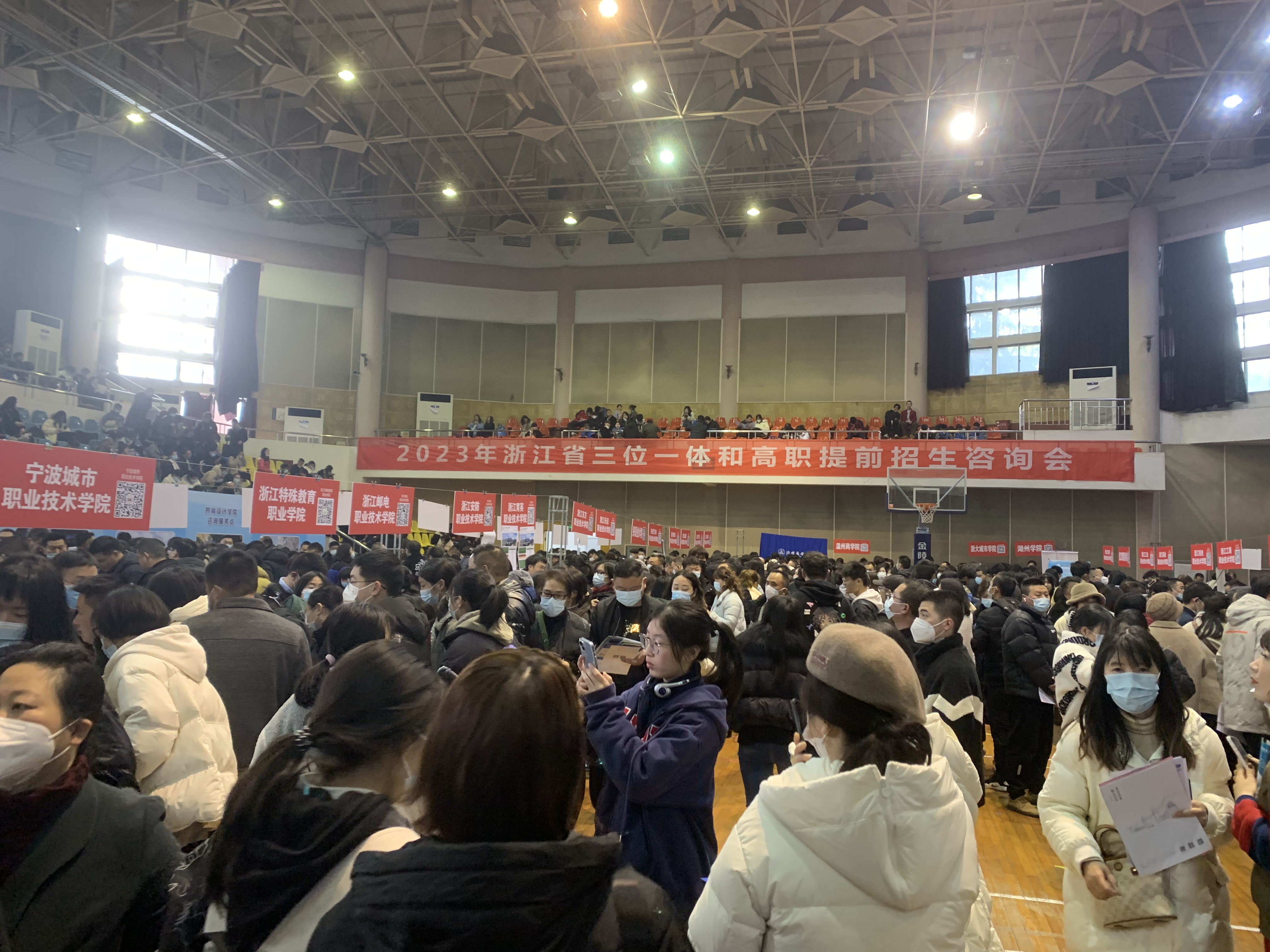 2023年,我校三位一体面向浙江省提前招收小学教育(师范)、学前教育(师范)、特殊教育(师范)和护理学四类普通类考生;高素质复合型硕士层次高中教师培养招生面向浙江省考生,开设物理学(物理学+教育技术学本硕衔接实验班)(师范)和历史学(历史学+思想政治教育本硕衔接实验班)(师范)两个专业,历史学复硕专业报考要求学业水平测试不少于7个A,历史为A、外语不低于B。咨询会在嘉兴南湖学院体育馆举行,女同av 负责老师还精心准备了我校三位一体和复硕专业招生宣传册及招生章程、往年录取数据等资料,供家长和考生查阅。