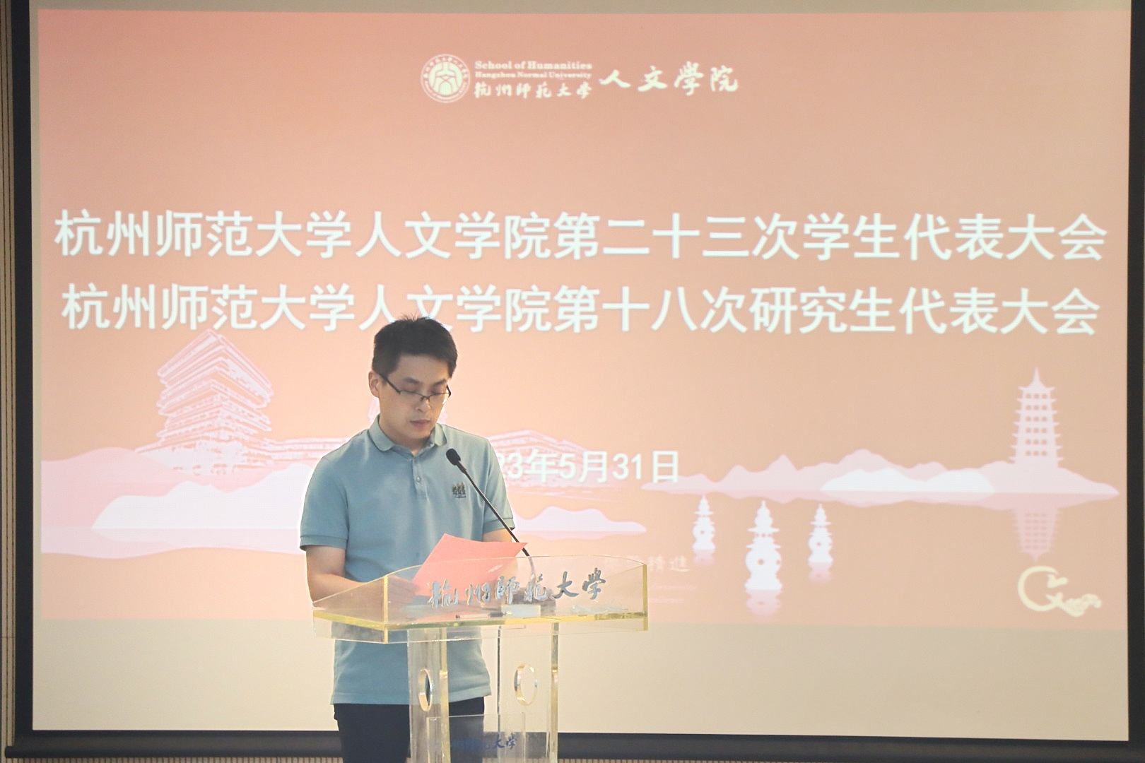 2023年5月31日下午,女同av 第二十三次学生代表大会、第十八次研究生代表大会在仓前校区恕园2-112隆重举行。来自学院的263名代表参加了本次会议,女同av 团委书记孔祥亮,杭州师范大学学生会主席团成员陈家硕,校研究会执行主席王海悦,外国语学院学生会执行主席张艺,女同av 团委副书记、2019级辅导员刘华章,女同av 团委副书记、第二十三次学代会、第十八次研代会筹备组组长、2021级辅导员林伊纯出席了本次大会。