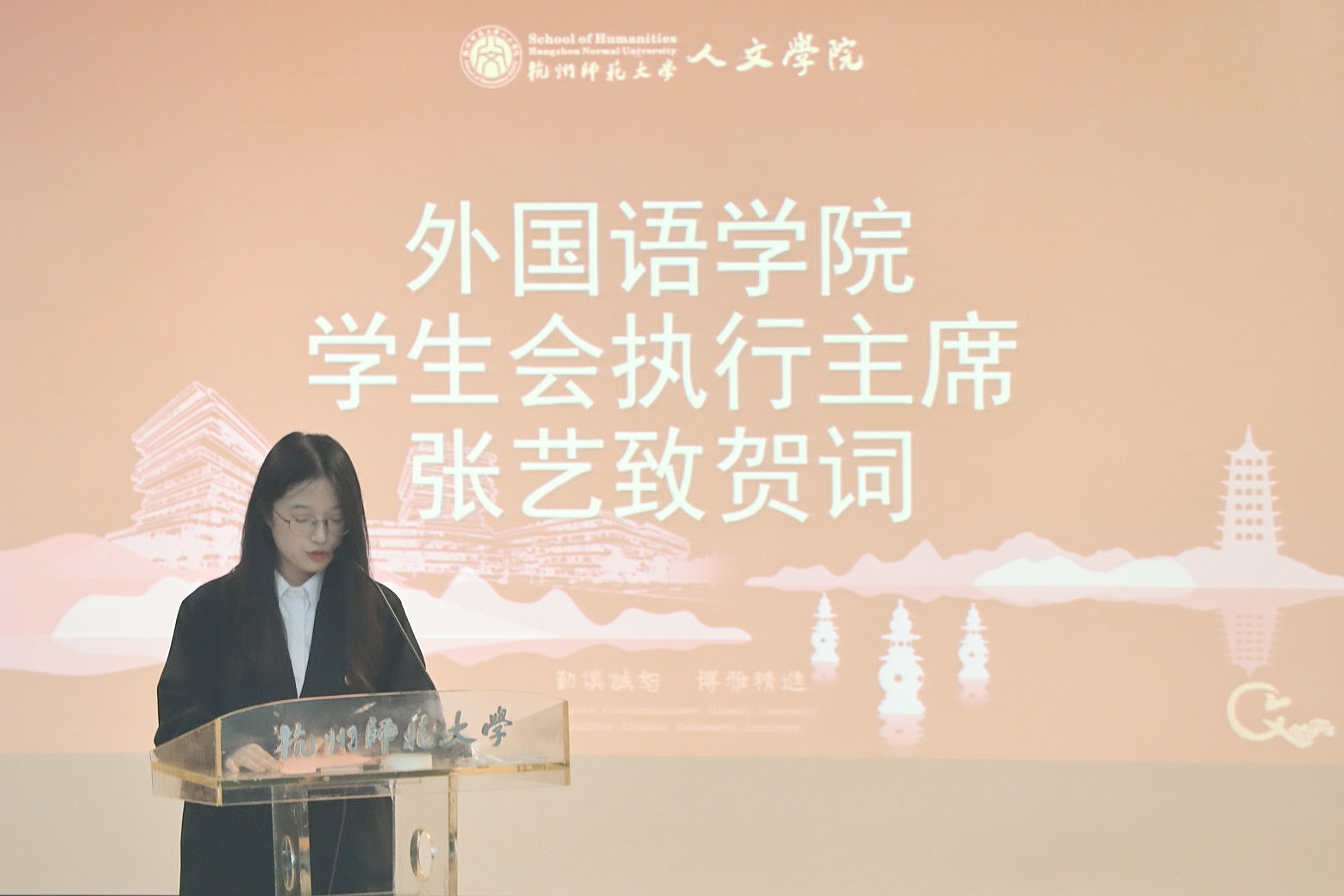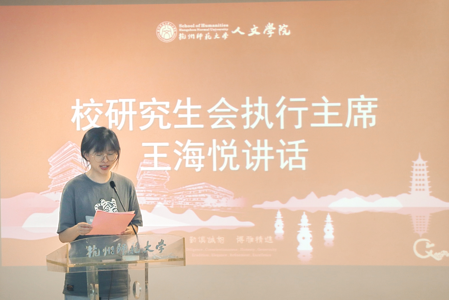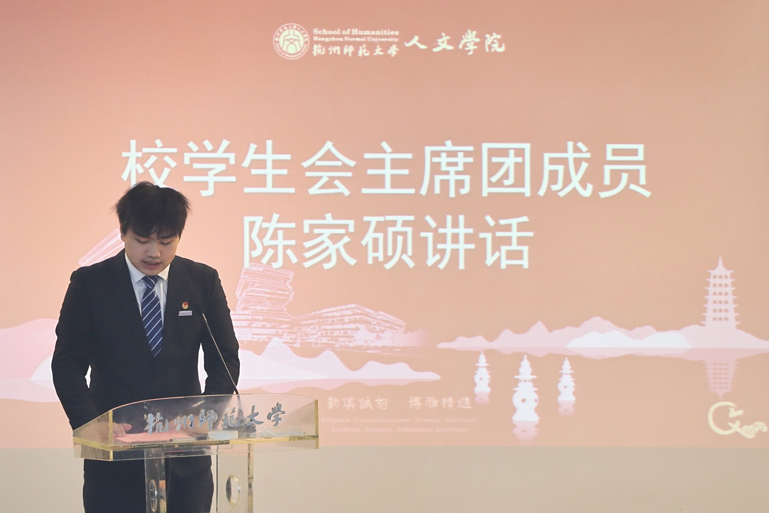 14点30分,正式会议召开。会议伊始,由女同av 团委书记孔祥亮致开幕词,他对21级老干部的辛勤工作表示由衷感谢,同时对在座的22级新干部提出了三点期望。第一,要做好迎难而上的准备;第二,要具有众志成城的精神;第三,要树立正确向上的思想。最后,他教导团学干部们要以管理好学院为己任、以服务每一位同学的成长为义务,并对团委学生会的新征程作出美好展望。而后,杭州师范大学学生会主席团成员陈家硕、校研究会执行主席王海悦、外国语学院学生会执行主席张艺依次进行发言,表达了对本次大会圆满成功和女同av 未来发展的诚挚祝愿。