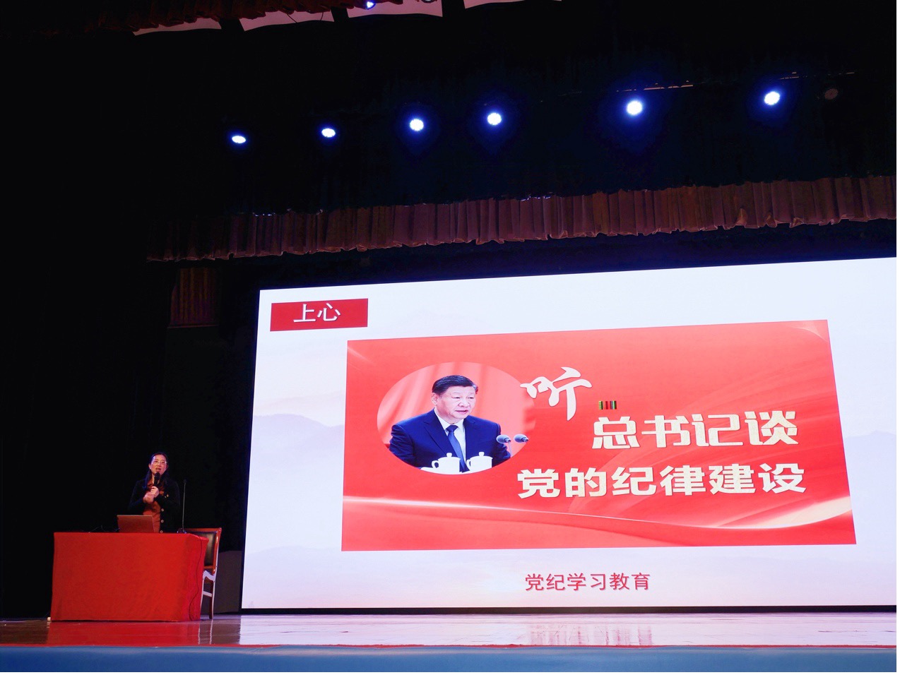 10月30日晚,王淑君老师在梦非剧场面向全体积极分子和发展对象,展开《大学生怎样争做一名合格的共产党员》的党课培训。党课伊始,王老师向同学们提出“为什么要加入中国共产党?”这一问题,引发了同学们对于自身入党初衷的思考。经过简短的师生互动,王老师结合中国共产党发展过程中落实奋斗目标的具体案例,向同学们明确了正确的入党动机。紧接着,王老师又围绕“怎样才可以入党?”这一问题展开讨论,以纪律条例和先进事迹代表为例,要求同学们“不忘初心”,以实际行动积极向党组织靠拢。专心,一心一意坚守对党的忠诚和热爱,肩负高度责任感;上心,坚持学习党的理论和路线方针,增强党性修养;用心,真心诚意为人民服务,精益求精;净心,以清正廉洁之作风,始终保持共产党员的先进性和纯洁性;齐心,团结一心共同为党的事业奋斗,发挥集体智慧;关心,心系党和人民的利益,为人民群众排忧解难。最后,王老师向各位同学表达了加入中国共产党的殷切希望,同学们也纷纷表示,今后将以更饱满的热情和更踏实的作风投入学习工作中去。