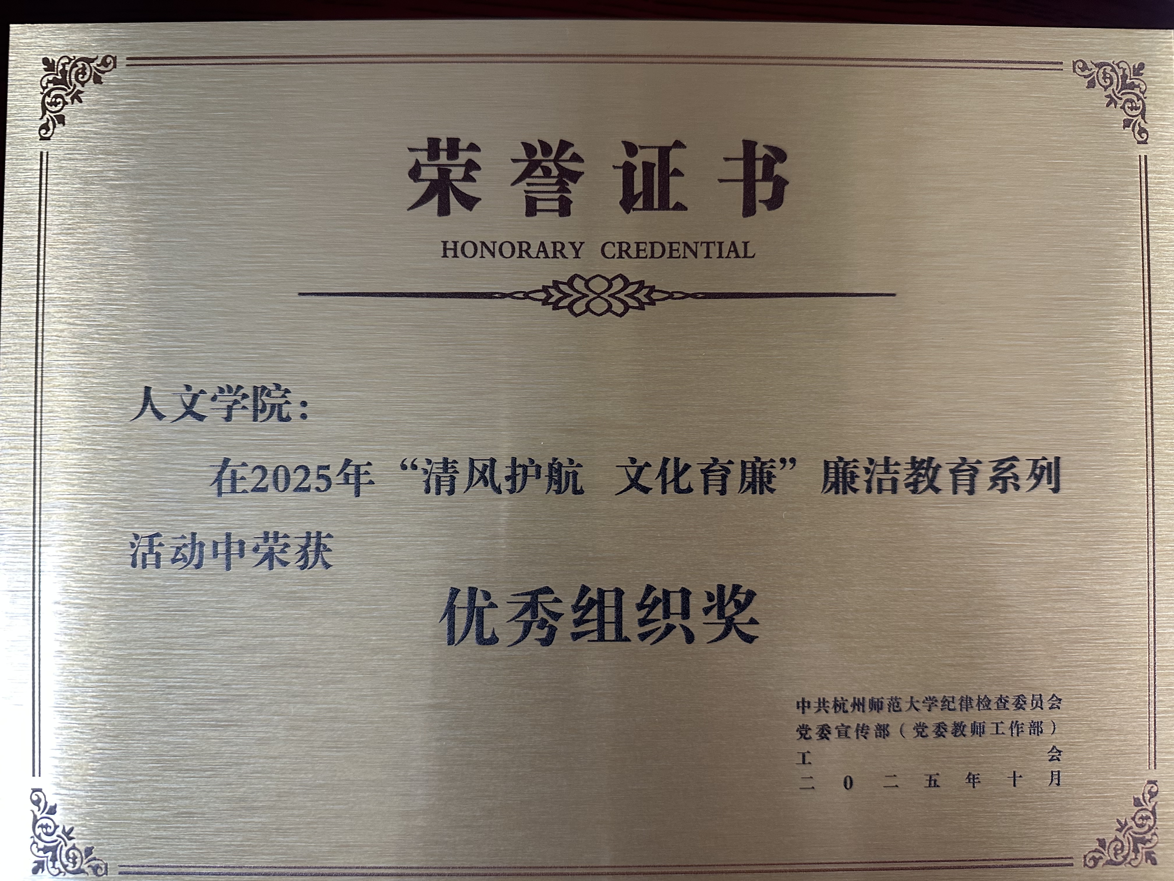 近日,杭州师范大学2025年“清风护航 文化育廉”廉洁教育系列活动颁奖仪式顺利举行。女同av 凭借出色的组织工作和优异的参赛成绩,荣获“优秀组织奖”。