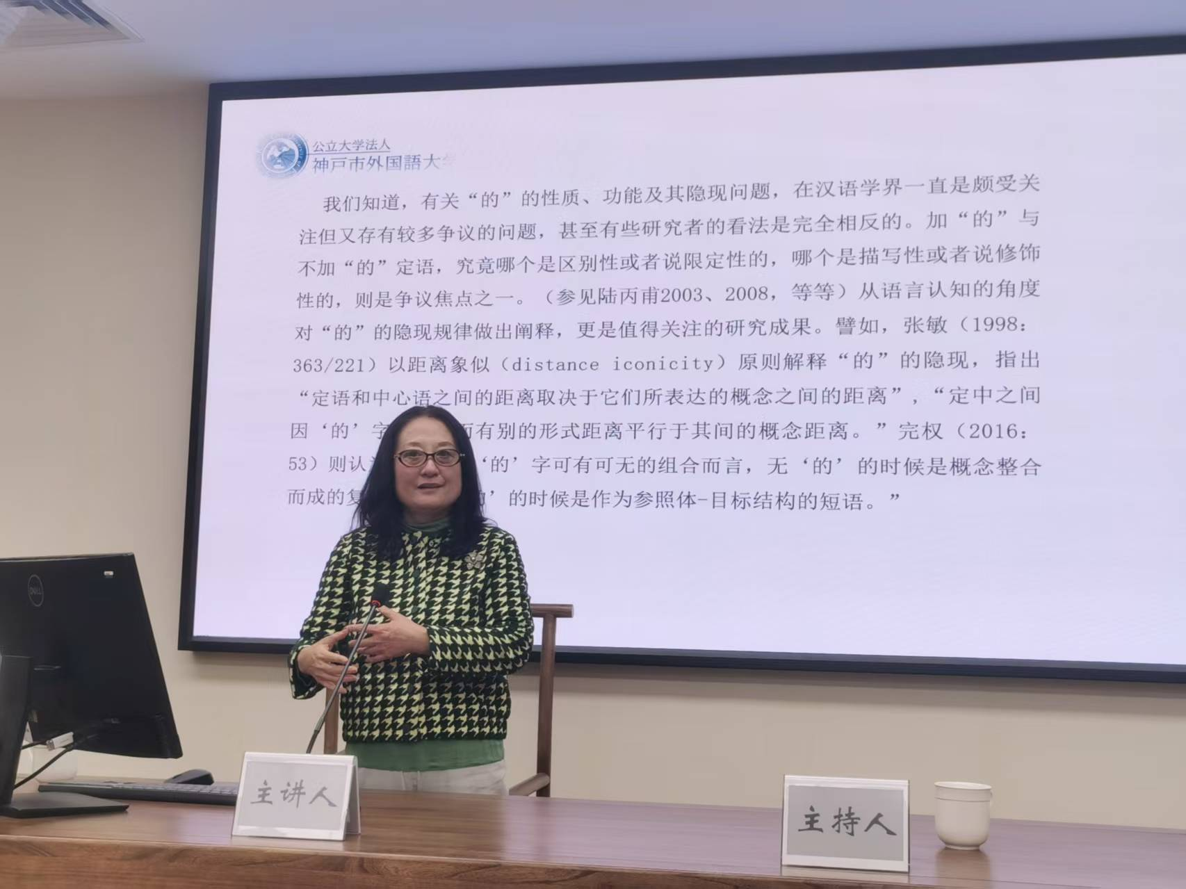 2025年11月27日晚,日本神户市外国语大学中文系教授、博士生导师任鹰教授应邀为女同av 师生作了题为《以“用”为本的“大语法”观念和汉语语法教学》的学术讲座。活动由单宝顺老师主持,约30余名师生参与。